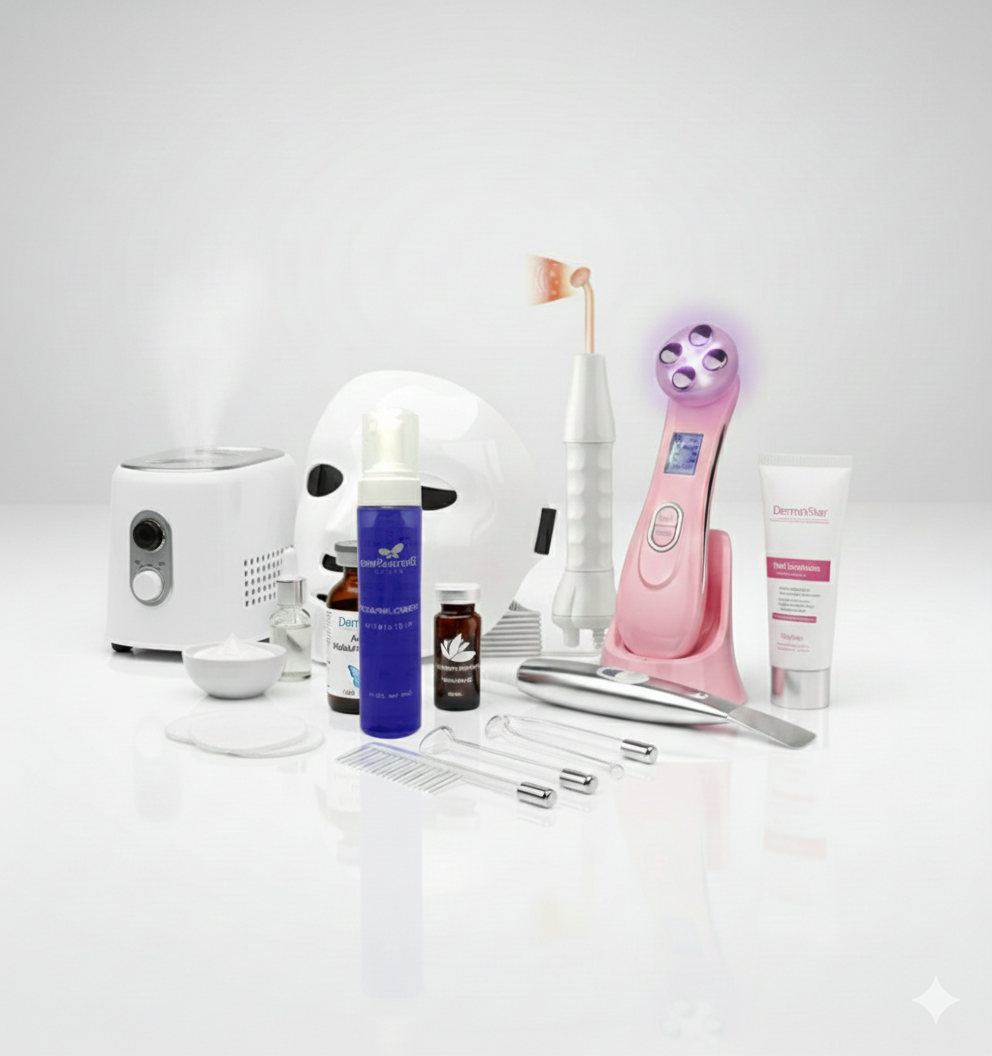 Transforma tu rutina de cuidado facial con este paquete avanzado profesional. Incluye electroporador para potenciar la absorción de activos, alta frecuencia para controlar impurezas, skin scrubber para exfoliación profunda y máscara LED para estimular la regeneración celular. Complementa con vaporizador para preparar la piel, peel enzimático suave, espuma limpiadora efectiva, y serums concentrados de ácido hialurónico y vitamina C. Finaliza con crema de colágeno reafirmante y bloqueador solar de amplio espectro. Una solución integral que combina tecnología avanzada con ingredientes activos de alta potencia para resultados visibles en luminosidad, firmeza y protección.