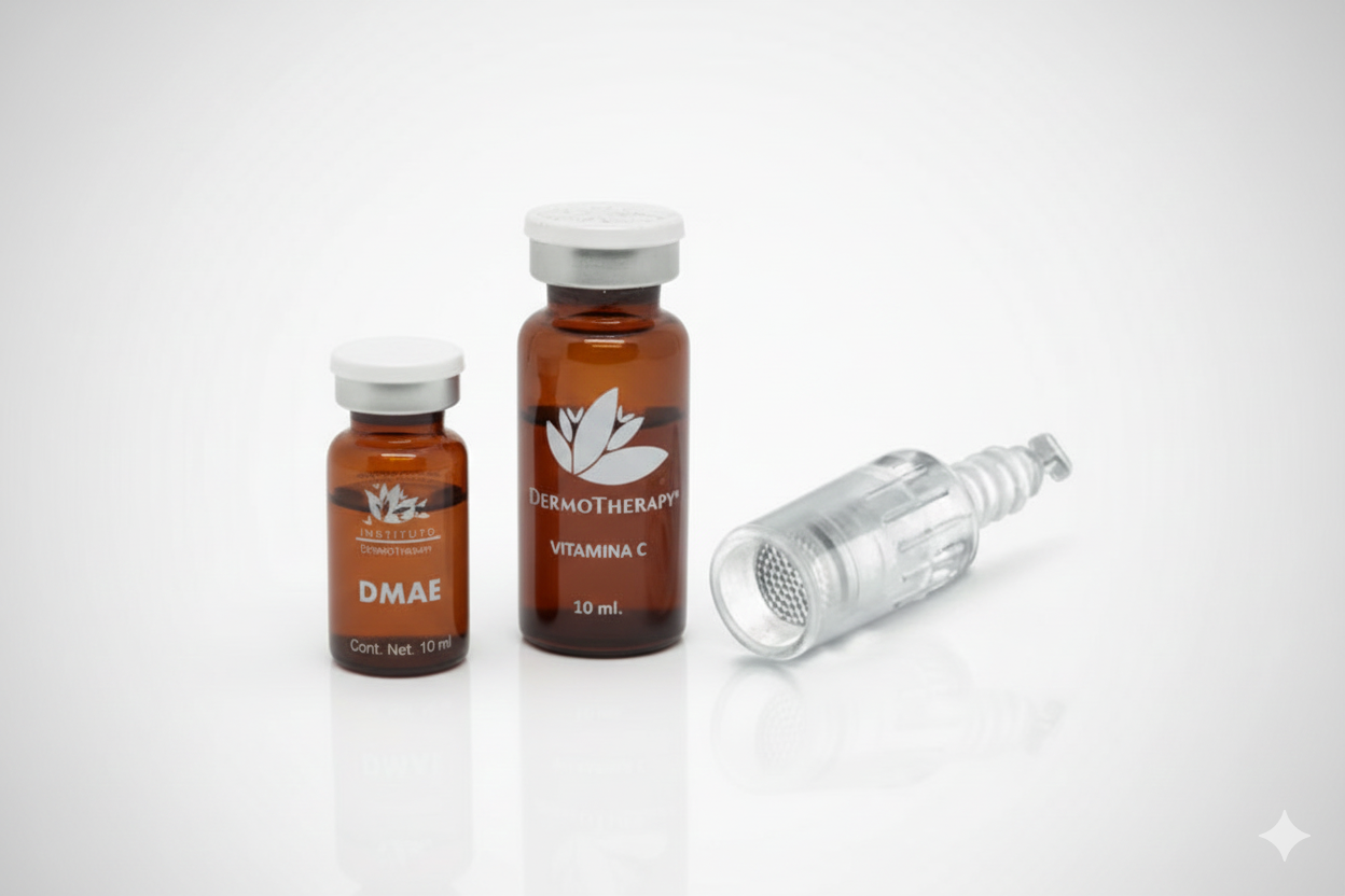 Transforma tu rutina de cuidado facial con nuestro Paquete Básico Dermapen, diseñado para maximizar resultados profesionales en casa. Este kit completo incluye 15 agujas de microneedling calibre 36, ideales para estimular la producción de colágeno y mejorar la textura de la piel. Complementado con Vitamina C de alta potencia para potenciar la luminosidad y antioxidantes, y DMAE para firmar y tonificar. Una solución integral que combina tecnología de microneedling con ingredientes activos de comprobada eficacia dermatológica.